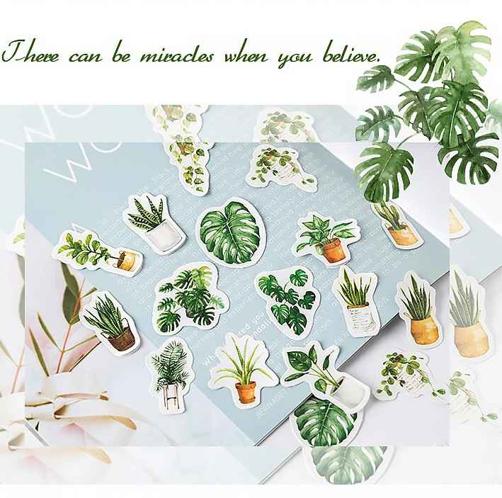 即日発送/海外箱入りフレークシール 46枚入り 観賞植物 鉢植え サボテン レトロ ジャンクジャーナル コラージュ デコレーション ビンテージ ヴィンテージ スクラップ アンティークデザイン 海外シール 手帳